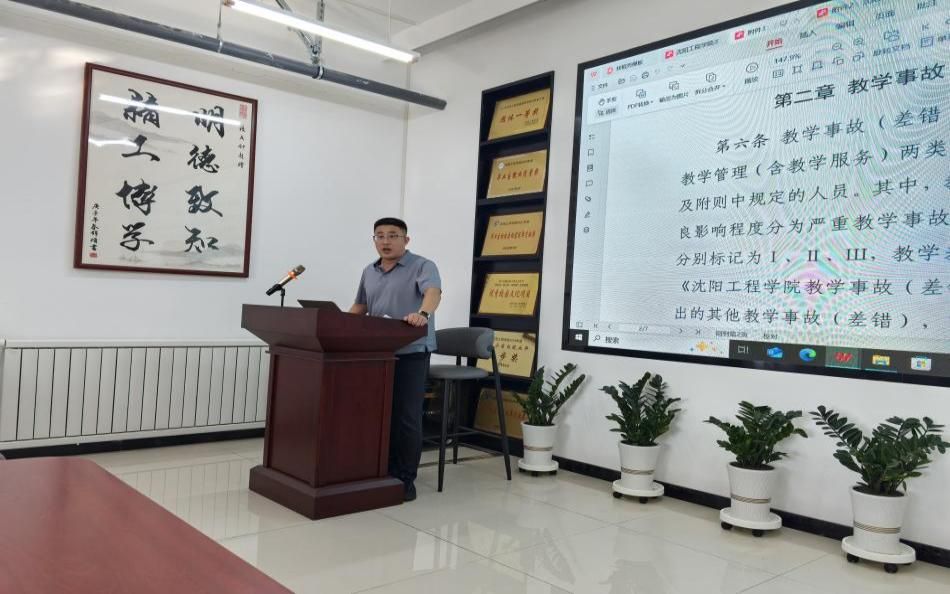 为了进一步明确教学运行和管理过程中的红线与底线,学院院长高庆忠向与会老师详细解读了学校近日下发的《太阳集团2138教学事故和教学差错认定与处理办法(试行)》,副院长郭瑞结合学院教学运行实际,进一步细化强调了在课堂教学、实训管理等方面的具体要求,为确保学院日常教学工作顺利开展提供了清晰指引。