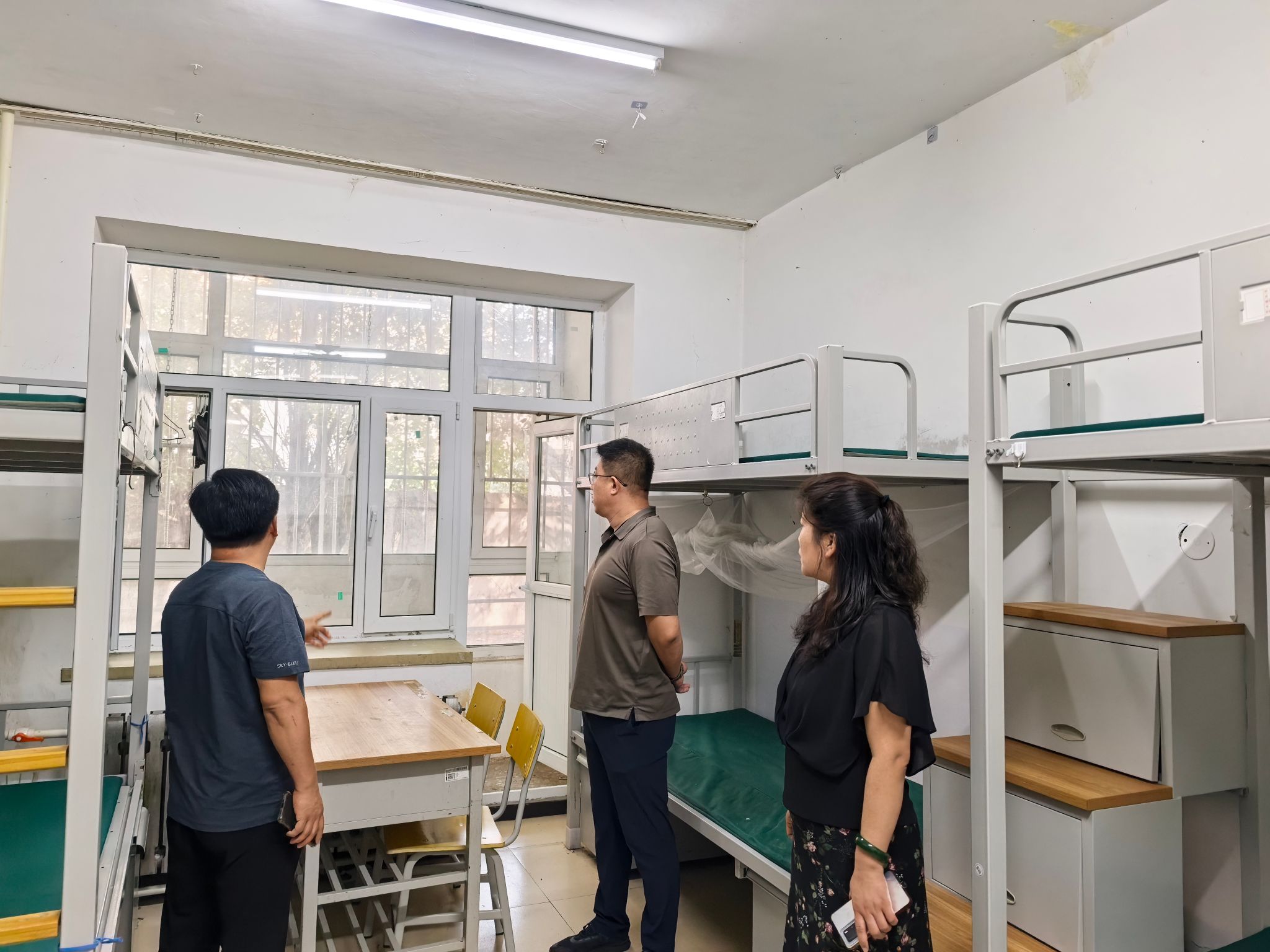 为给新同学提供安全、舒适的住宿环境,9月2日2138CC太阳集团院长高庆忠、党总支书记刘闯、党总支副书记谢芳带领学院辅导员深入宿舍,开展新生入学前卫生安全排查与住宿问题梳理工作,对学生的床垫、储物柜、桌椅的配备情况进行了核查,排查安全隐患,从细节处把关,用行动为新生入学保驾护航,确保为新生们创造一个安全舒适、温馨、和谐的宿舍环境。