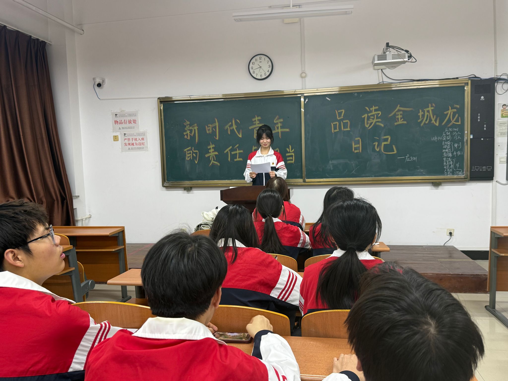 本次班团会围绕“品读金城龙日记”“新时代青年的责任与担当”等核心主题,结合金城龙同志冰河救人、军旅奉献、医者仁心的感人事迹,通过专题学习会、事迹报告会、主题分享会等多样形式,深情追忆英雄足迹,交流青春感悟。在专题学习环节,同学们逐字品读金城龙日记,从质朴文字中感受他不计个人得失、始终把人民利益放在首位的赤子情怀,深刻理解“无名无利”背后的信仰坚守;在事迹报告环节,重温他冰河救人的英勇瞬间、军旅生涯的默默奉献、医者岗位的仁心大爱,直观体会“有情有义有国”的精神内核;在主题分享环节,同学们结合自身学习生活经历,讲述身边的奉献故事,深入探讨如何将“小我”成长融入祖国“大我”、人民“大我”的发展征程,现场氛围庄重而热烈。