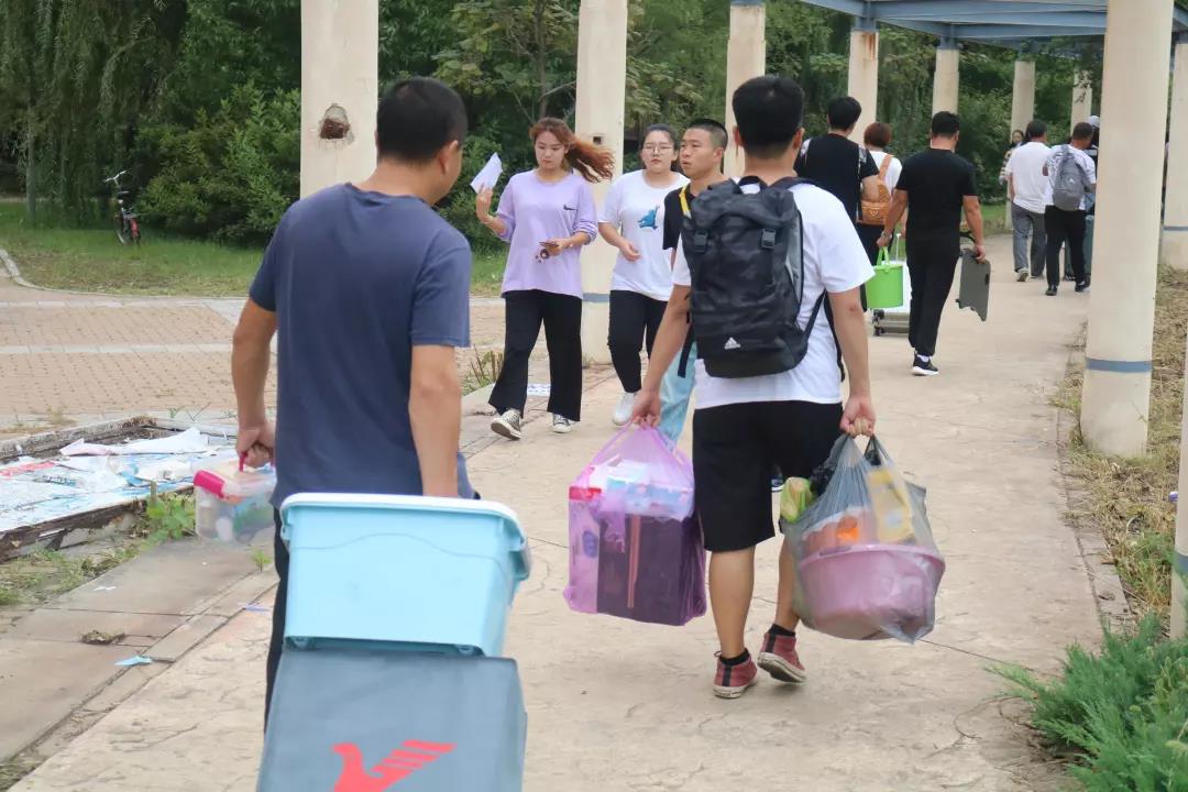 【学生代表带着搬行李】