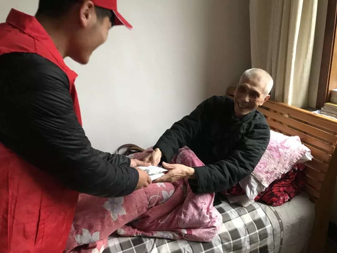 最后,志愿者们为老人表现的自己的才艺,看着耄耋老者扬起的眼角和嘴角,感到心尖有暖流淌过。