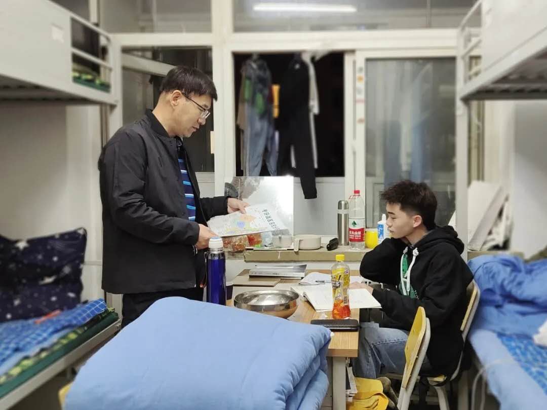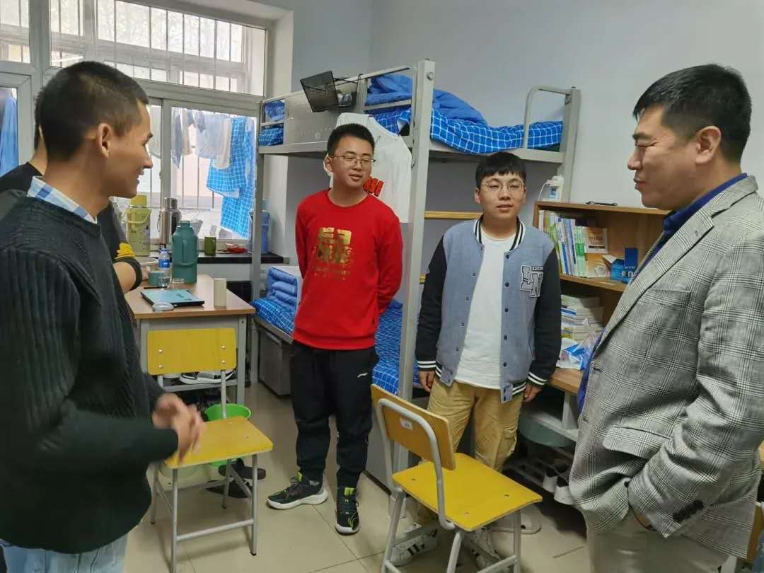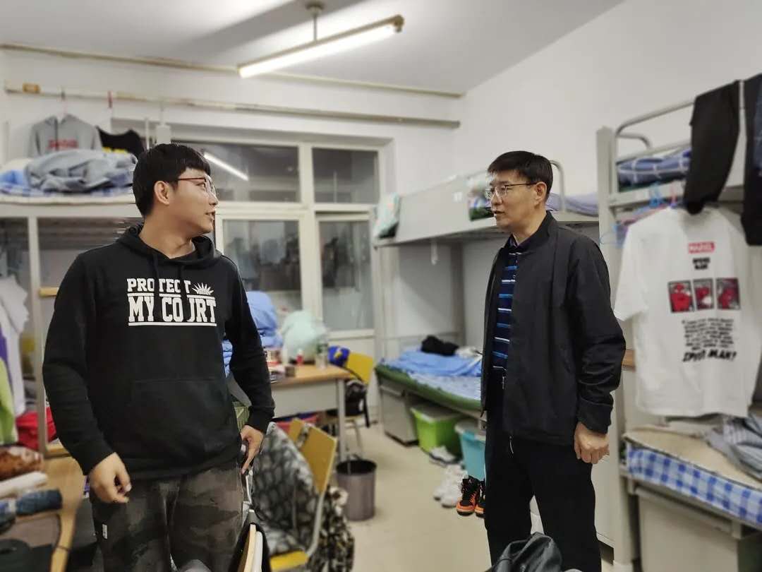 2138CC太阳集团党总支副书记刘海玉,走进老生寝室探望留校学生。了解假期安排并送去节日问候。
