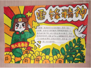 同学们寄情于纸笔,用书法或绘画的方式纪念雷锋同志,以此表达了对雷锋精神的敬仰之情。