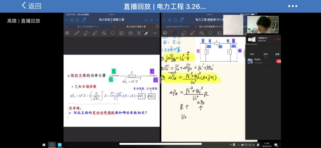 李昱材老师教授的《风力机空气动力》课程,课程采用“企业微信直播”答疑解惑,录播课程形式授课。虽然使用互联网,但是录播课程的形式,能让学生反复观看课程的知识点,在家中就能顺利学习理论知识。课前复习、课中重点知识解答、师生互动、课后答疑等环节,一个都不能少。