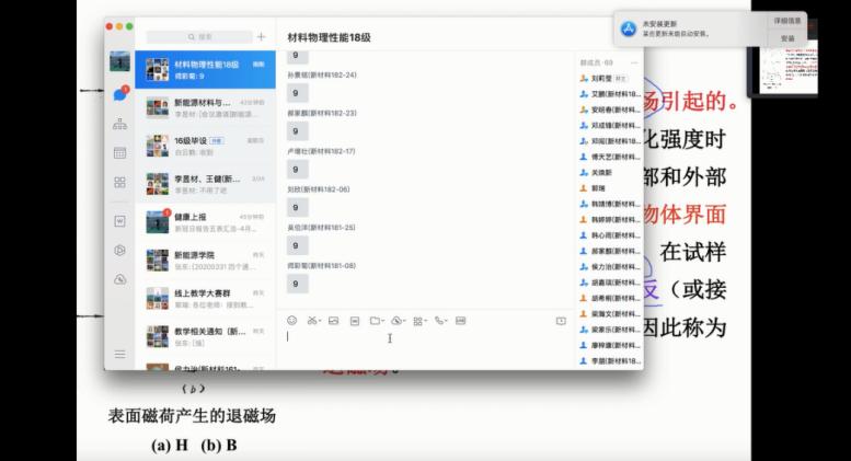 刘莉莹老师承担的《材料物理性能》是一门专业基础课,具有强理论、难学习的特点。针对该课程的特殊性质,选用了企业微信会议的方式进行直播授课,该授课方式可直接与学生进行语音和视频交流,能及时把握授课节奏,并结合超星学习通进行课前签到、课上讨论及课后作业的教学任务。