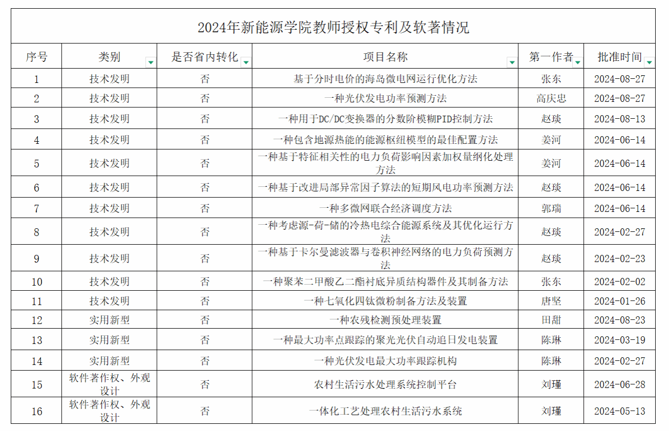 2024年,我院教师累计获批授权专利16项,其中发明专利11项、实用新型3项、软著2项。