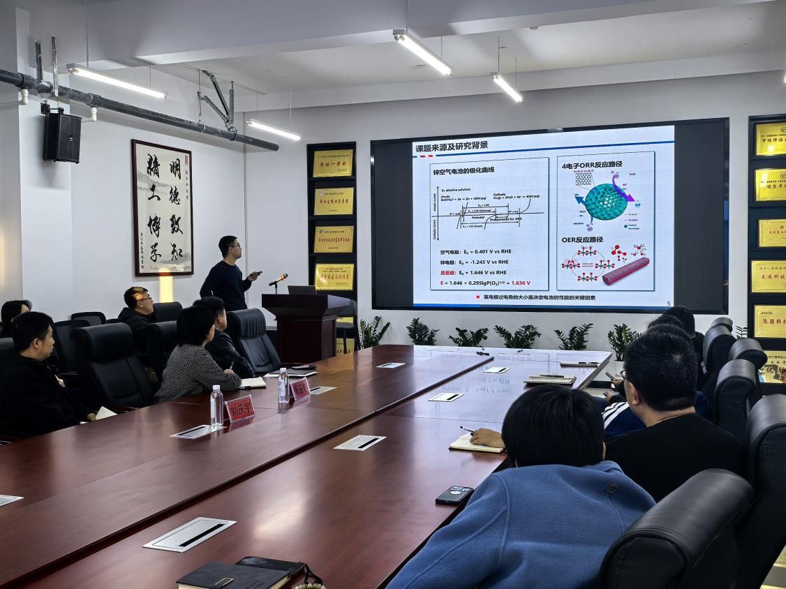 本次沙龙特别邀请我院新入职的刘恒岐博士担任主讲人。刘恒岐博士毕业于哈尔滨工业大学,长期从事新能源材料领域研究,在阴离子交换膜电解水技术方面积累了丰富的研究经验。在报告中,他系统阐述了阴离子交换膜材料设计的最新进展,分享了其在膜电极界面优化方面的创新思路,并提出了实现高效稳定电解水系统的技术路径。
